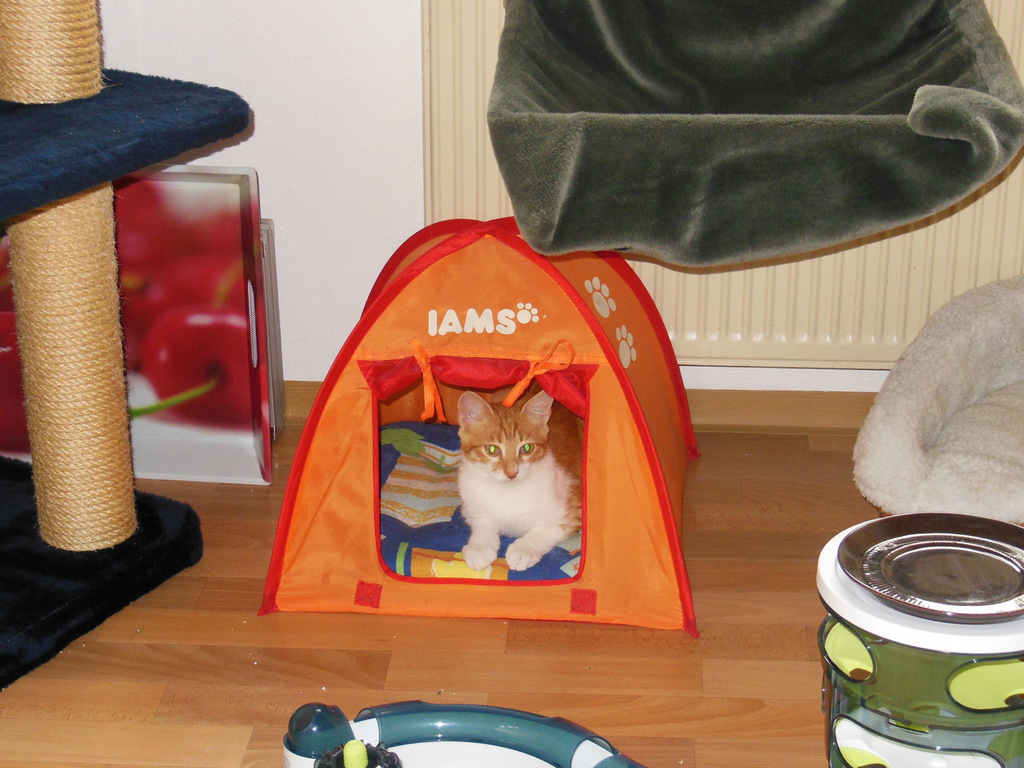 06.09.2014 22 Uhr - Tapsy ist wohlbehalten "daheim" angekommen. Der Süße ist völlig ungeschockt und voller Tatendrang aus der Transportbox ausgestiegen. Das KaKlo hat er sofort inspiziert und dann auch gleich gefressen und getrunken. Anschließend hat er gespielt und mit mir geschmust wie ein kleiner Irrer.