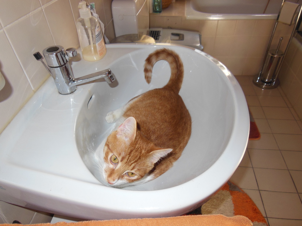 langsam auch Tapsy's Interesse an Waschbecken und Hahn. So ein schlauer Kater aber auch.