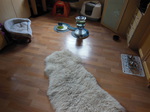 Wohnzimmertisches, meine Werkzeuge für die Tierhaarentfernung von Decken, Kissen usw. - na, so "Striegel-Karlchen" halt.