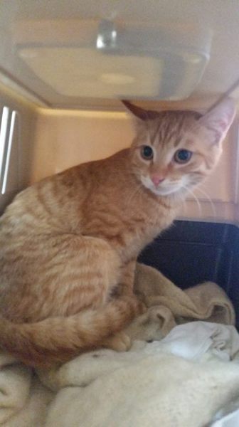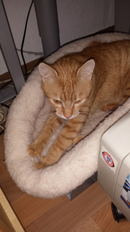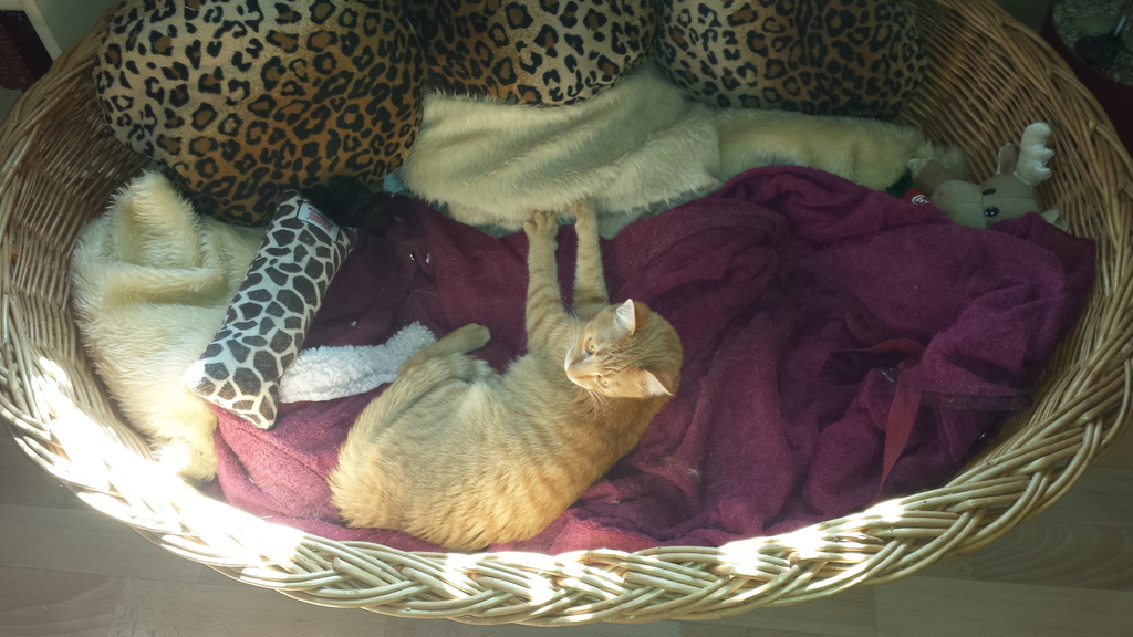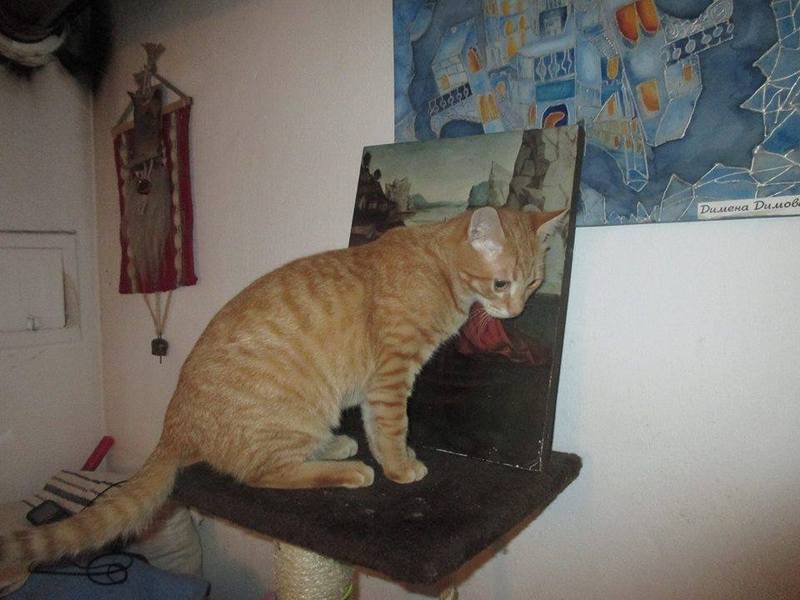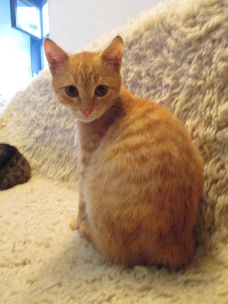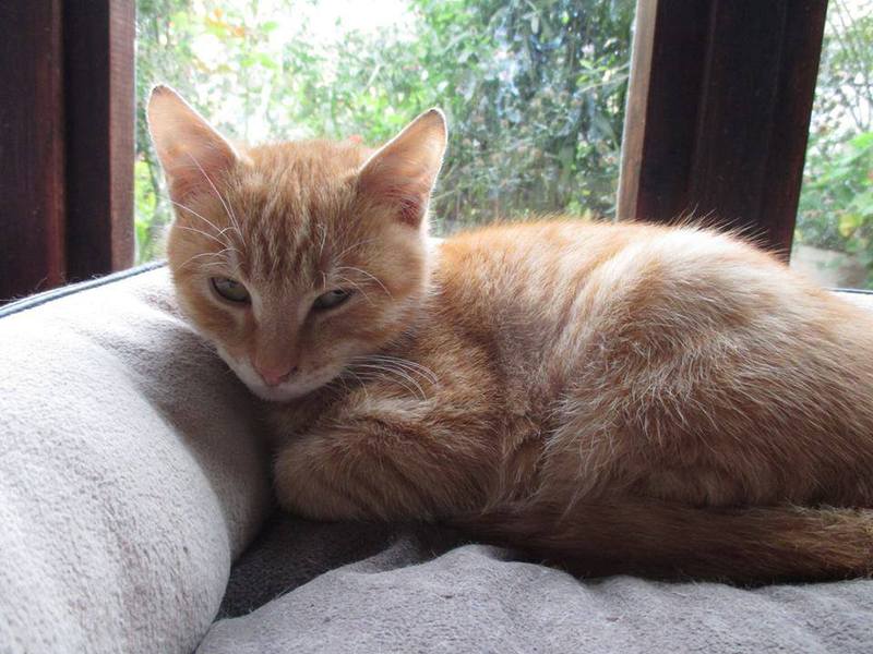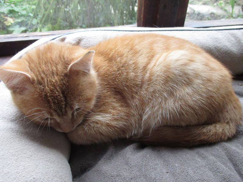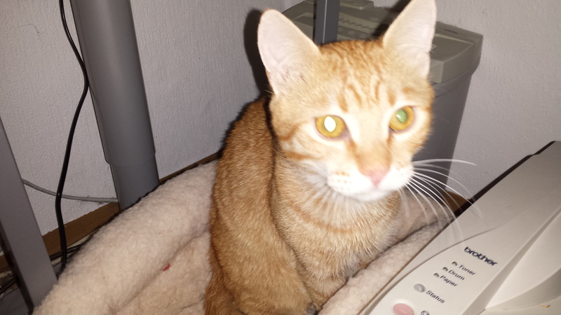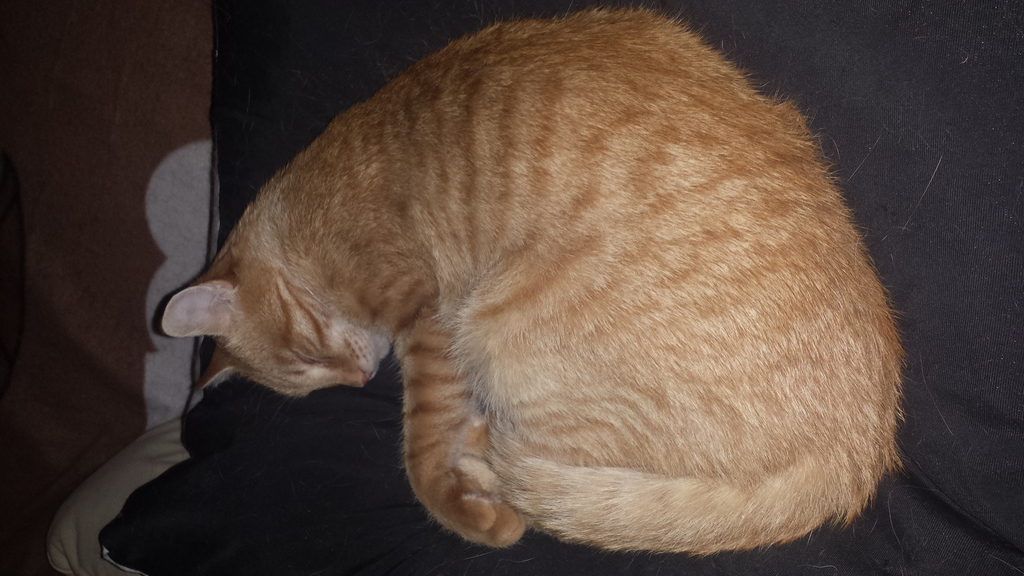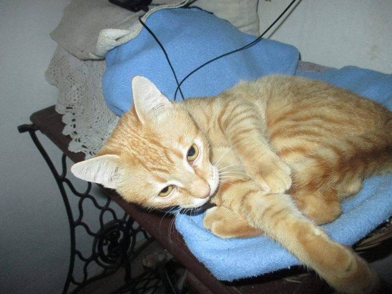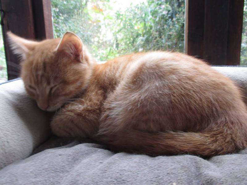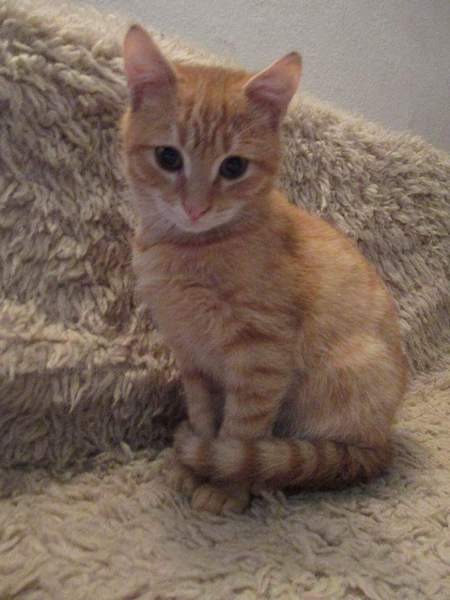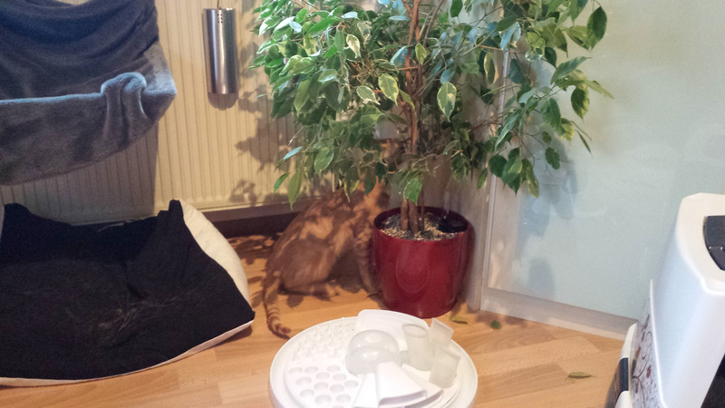 26.03.2016 - Dino's Atmung hat sich sehr verbessert. Ich habe gerade in der Minute 30 Atemzüge (im Ruhezustand) gezählt. 20 - 30 pro Minute gilt wohl als normal. Die Tablettengabe gestaltet sich dank Leberwurstpaste völlig unkompliziert. Gefüttert wird er jetzt in mehreren über den Tag verteilten Portionen. Ich muss nur aufpassen, dass der Rest der Bande nicht speckelfett wird - die kriegen natürlich auch immer einen kleinen Klecks ab. Ansonsten ist Dino viel agiler als gestern. Hier ein brandaktuelles Foto von ihm. Ich komm mir schon langsam wie eine Stalkerin vor aber ich habe ihn gerade im Klo beobachtet wie er ein gesund aussehendes "Häufchen" abgesetzt hat.