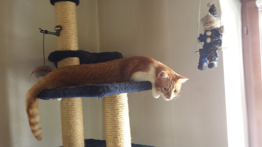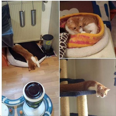 Tapsy zog im Alter von ca. 7 Monaten am 06.09.2014 bei uns ein. Er wurde von einer Tierschutzorganisation in Bulgarien vermittelt. Von Anfang an war er sehr aktiv und bewegungsfreudig - was ja normal ist für einen so jungen Kater. Leider hat er Annäherungsversuche von Gina und Loui immer abgelehnt und sich sofort zur Wehr gesetzt. Statt dessen hat er Gina und Loui angegangen - anfangs hielt ich das noch für eine Aufforderung zum Spiel. Allerdings gingen diese Aktionen ziemlich schnell in absolute Kampfansagen über. Gina hat sich aus Angst immer mehr zurückgezogen. Loui hat sich Tapsy anfangs noch gestellt und es gab wilde Kämpfe mit allerlei Fellverlust - auf beiden Seiten. In diesem 1 Jahr hat Gina eine derbe psychogene Leckalopezie entwickelt und die Situation geht ihr an die Nieren. Auch Loui knurrt Tapsy mittlerweile nur noch lautstark an wenn er ihm zu nahe kommt und meidet seine Gesellschaft wie der Teufel das Weihwasser.