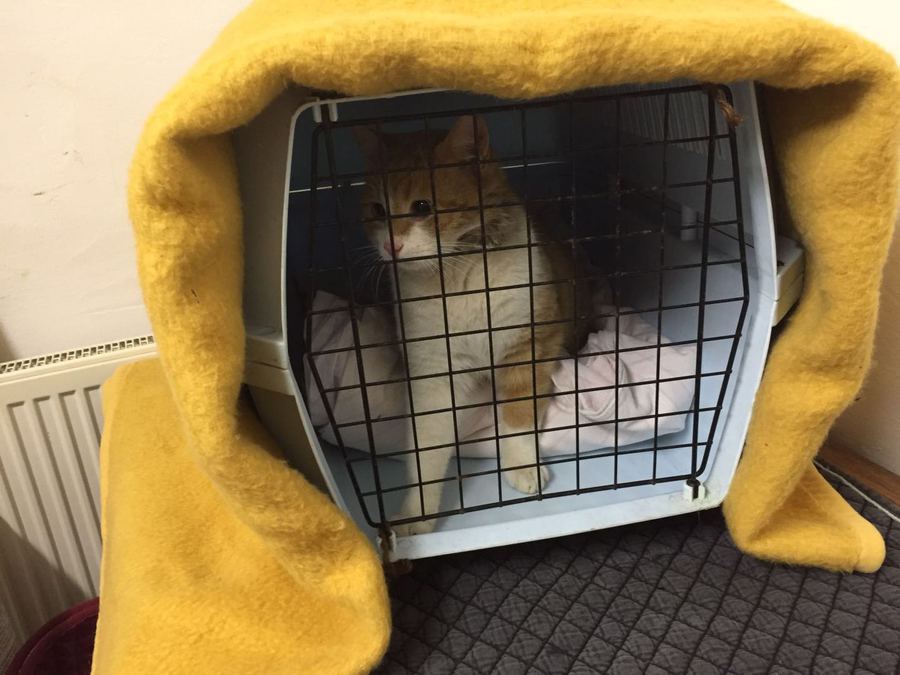 März 2016 - Dieser rote erwachsene unkastrierte Kater hat sich immer wieder mal häuslich in der Futterkammer unserer Stallkatzen nieder gelassen. Zufällig konnten wir ihn am gleichen Tag, als ich Sabine bei der Behandlung von Sweety unterstützte, einfangen und am nächsten Tag (nach 1 Nacht in Sabine's Waschküche) wurde er dann auch schon kastriert. Nun ist er in einem benachbarten Dorf scheinbar dabei heimisch zu werden. Hoffentlich klappt's.