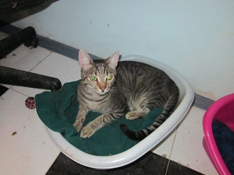 14.10.2015 - Positive Nachkontrolle für NK04-"Babsi" - jetzt Nala - Nürnberg. Eine 1,5jährige, braun-rot-getigerte Kätzin, die 08/2014 als Zweitkatze in Wohnungshaltung von der Tierhilfe Schweinfurt vermittelt wurde. Nala lebt mit 2 weiteren Katzen zusammen, ist mittlerweile kastriert und macht einen sehr gesunden, gepflegten Eindruck.