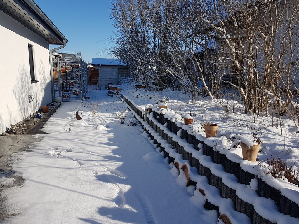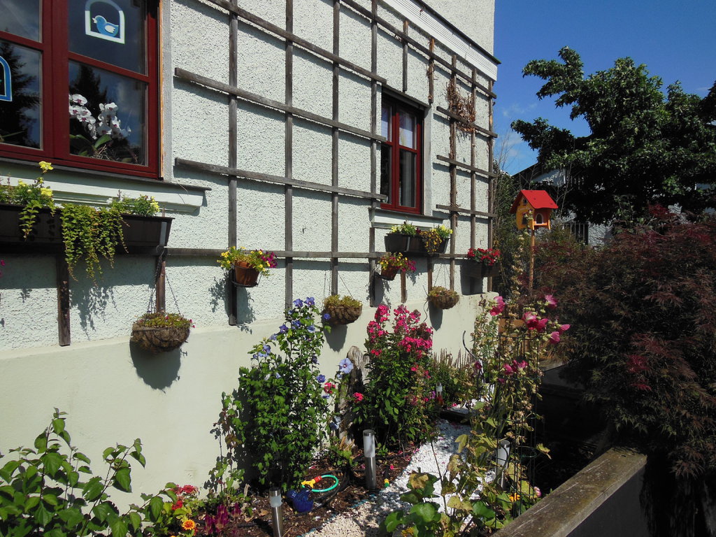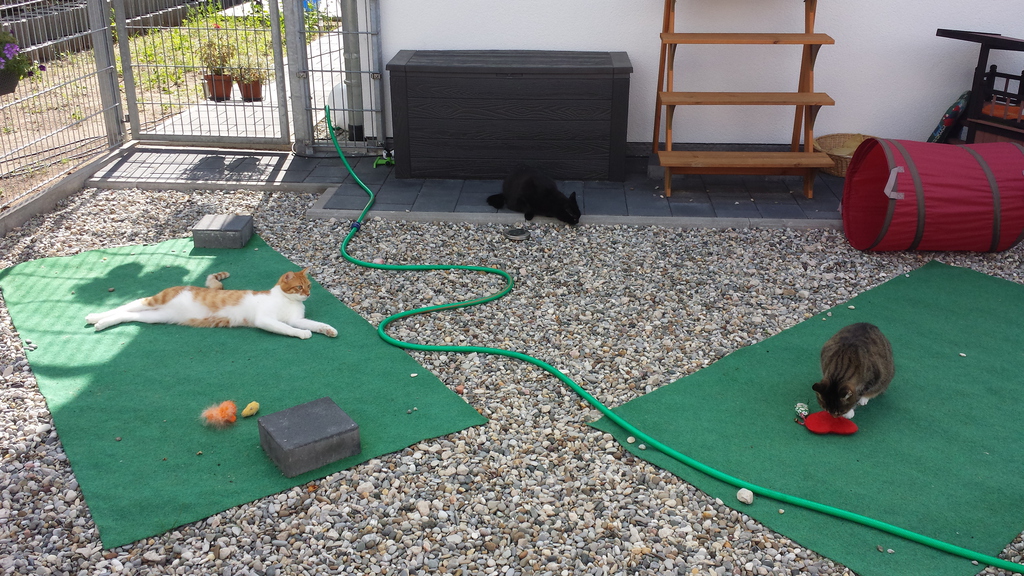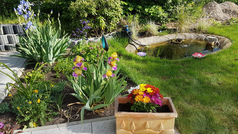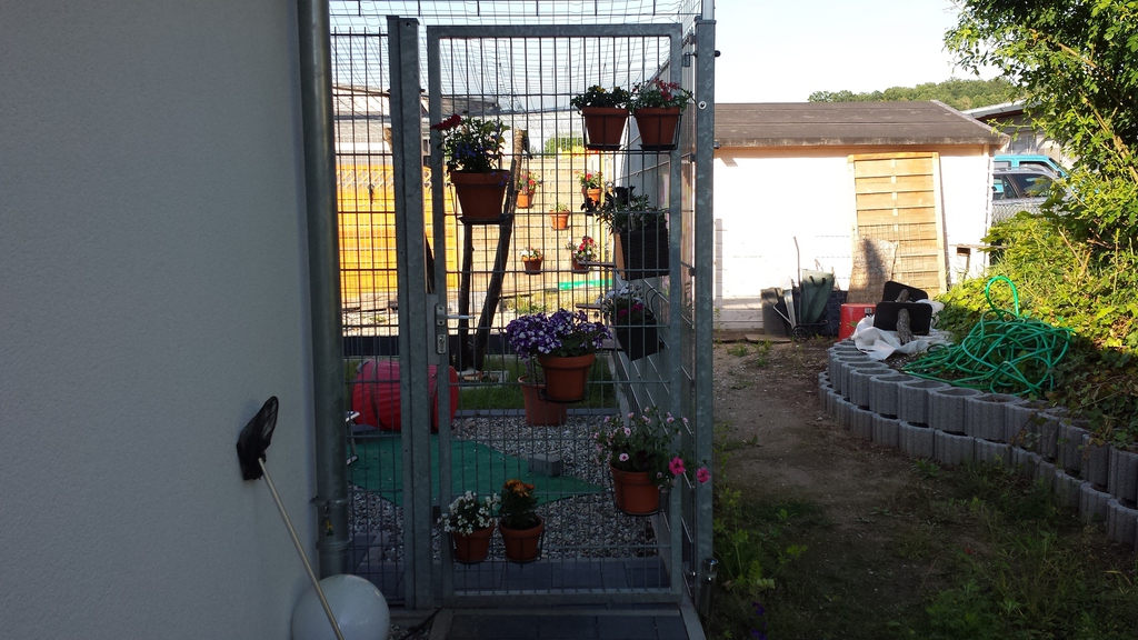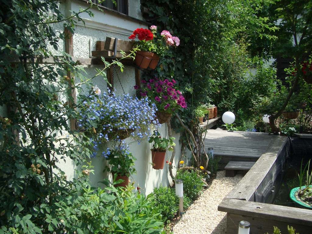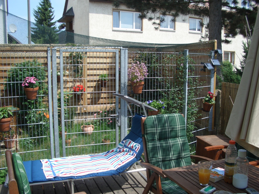 Natürlich habe ich diese Gelegenheit genutzt um meinen Miezen einen gesicherten Freigang gewähren zu können. Mit einigem Aufwand und entsprechenden Kosten ist eine kleine Katzenoase entstanden. Nun ist unser Garten ein hübscher bunter Fleck mit vielen Blumen und Düften, mit kleinen Tieren und einem Teich. Besonders eindrucksvoll erscheint mir unser Garten immer dann, wenn es wärmer wird und die Pflanzenwelt richtig zum Leben erwacht. Dann genieße ich jede freie Minute, die ich in diesem wunderschönen Garten verbringen kann.