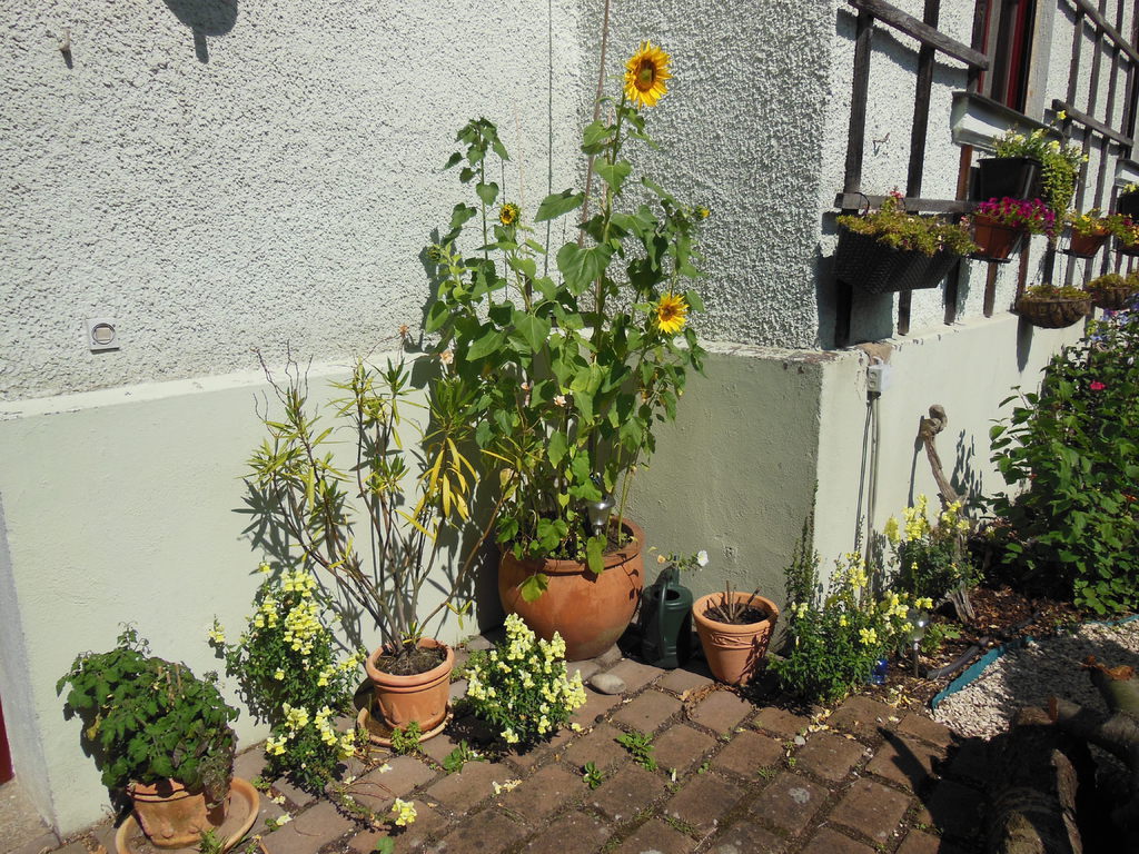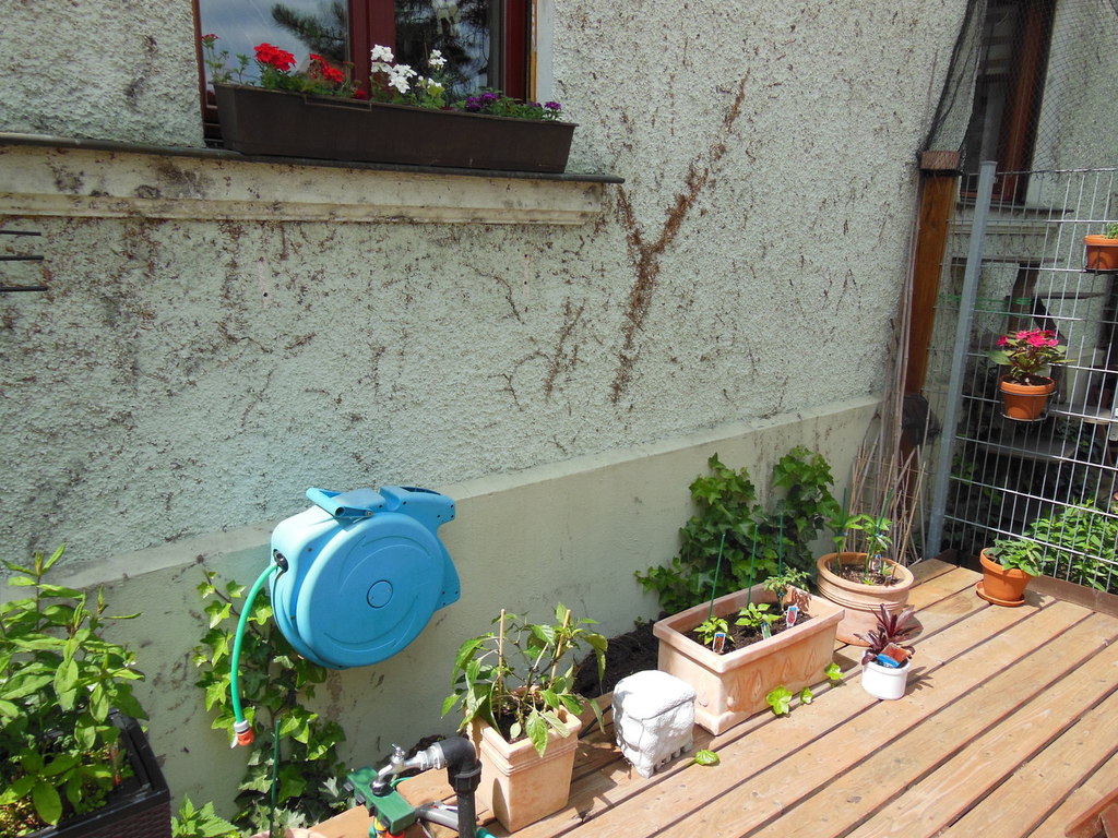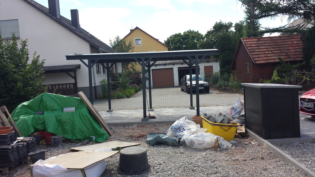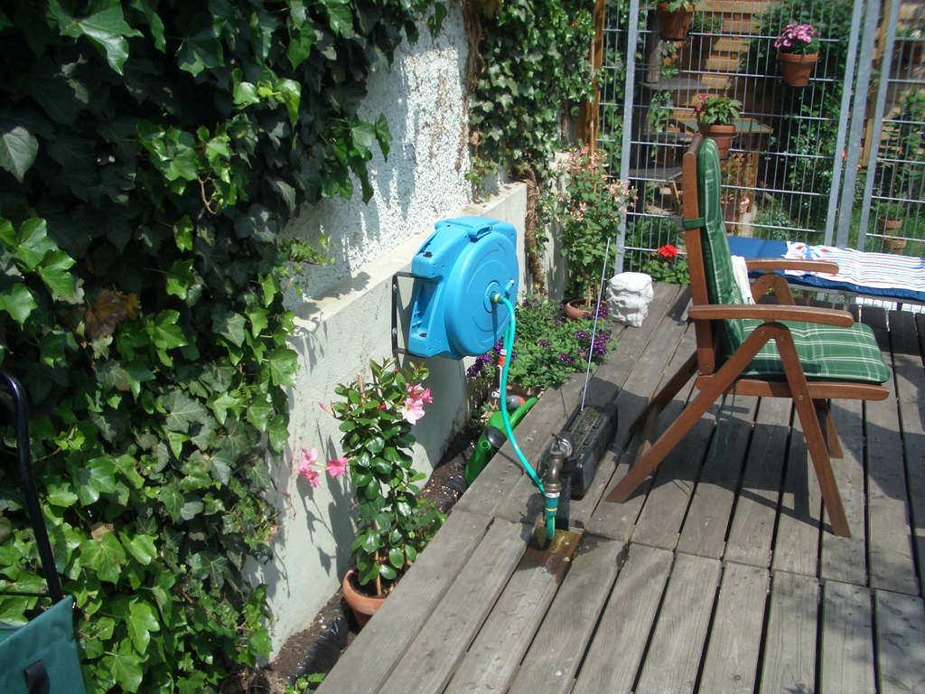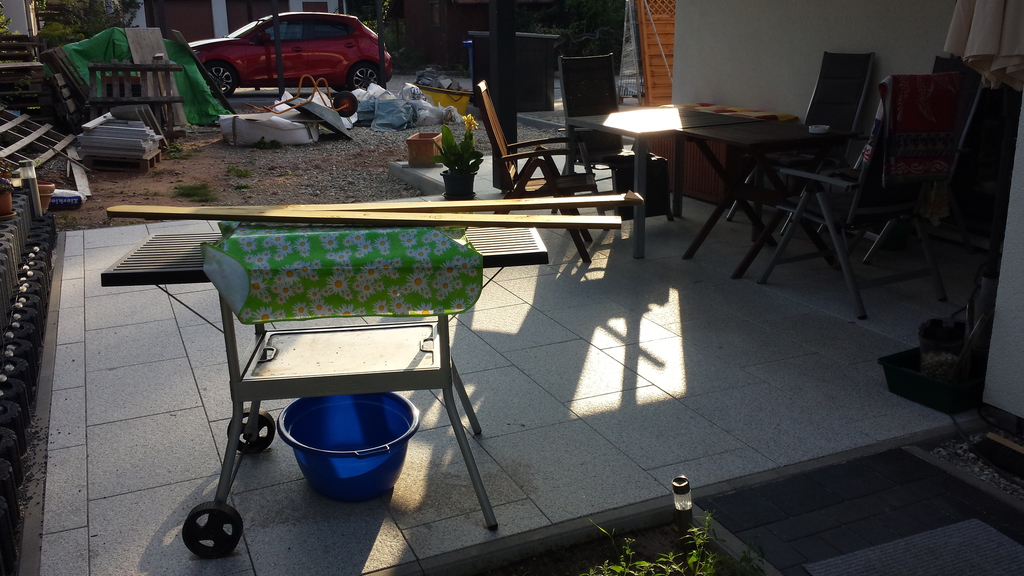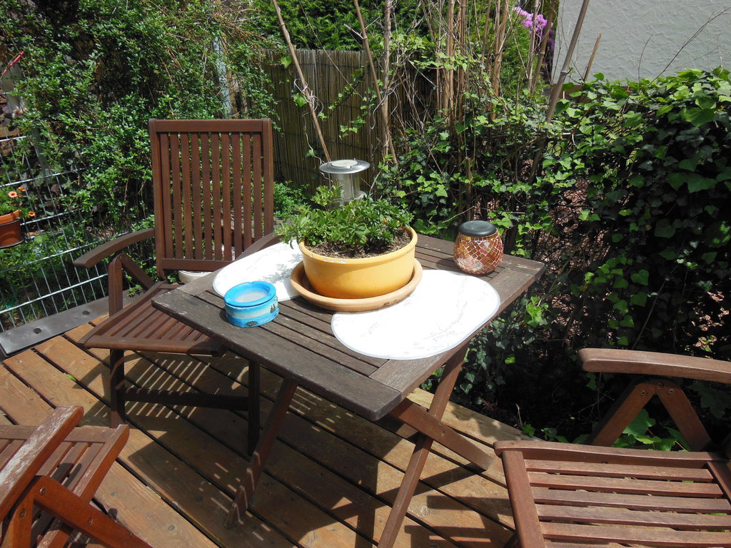 Ursprünglich wurde meine Wohnung in Roth im Hochparterre eines Zweifamilienhauses ohne Gartennutzung vermietet. 2009 sagte ich dann meinem Vermieter, dass ich mich nach einem neuen Wohnsitz umschaue weil ich keine Möglichkeit habe, mich am Feierabend, Wochenende oder im Urlaub gemütlich zum relaxen nach draußen zu begeben. Daraufhin kam sofort das Angebot das große Fischbecken hinter dem Haus mit Brettern zu decken um daraus eine große Terrasse entstehen zu lassen. Außerdem könnte ich den kleinen "Dschungel" zwischen Gartenzaun und der Terrasse "roden" und herrichten. Dieses Angebot habe ich natürlich mit Freuden angenommen, da meine Miezen und ich uns in dieser Wohnung sehr wohlfühlen und ich einem Umzug eigentlich mit Widerwillen entgegen gesehen hätte.