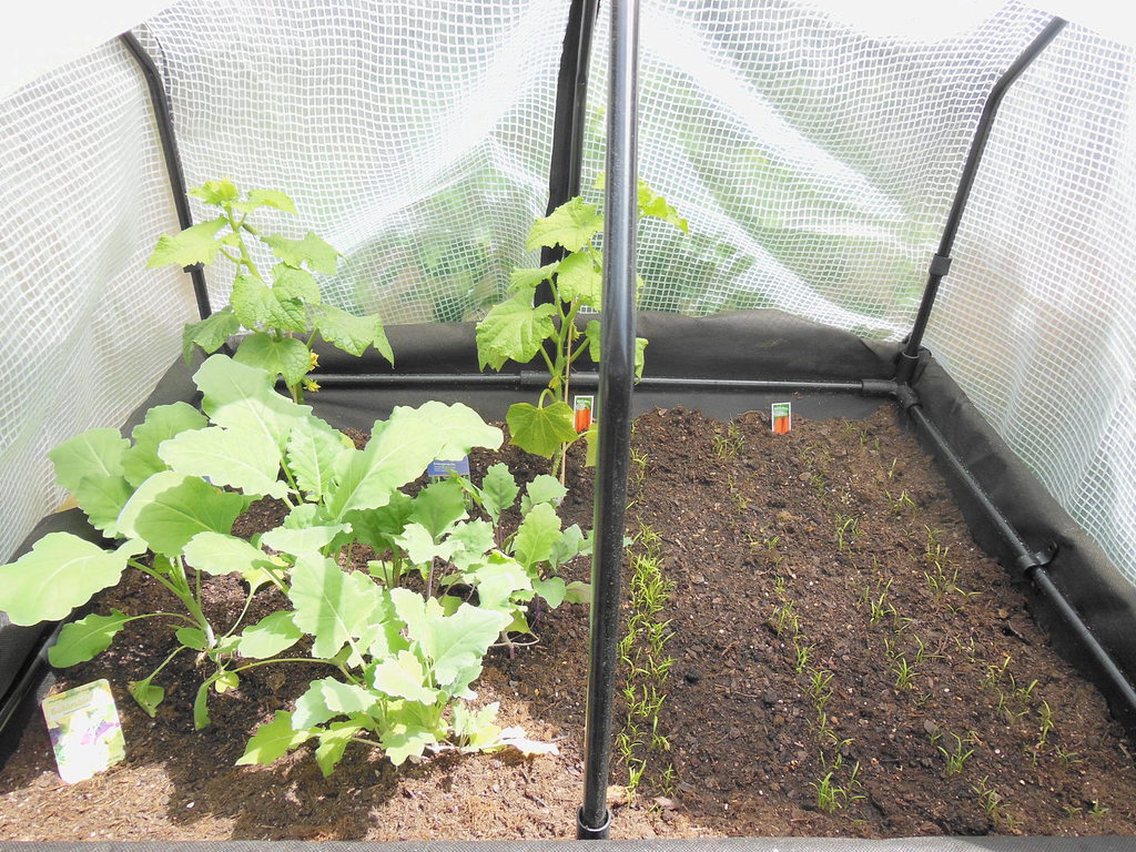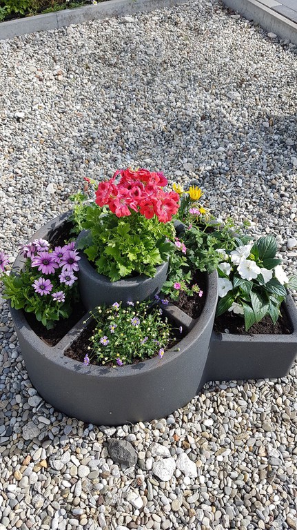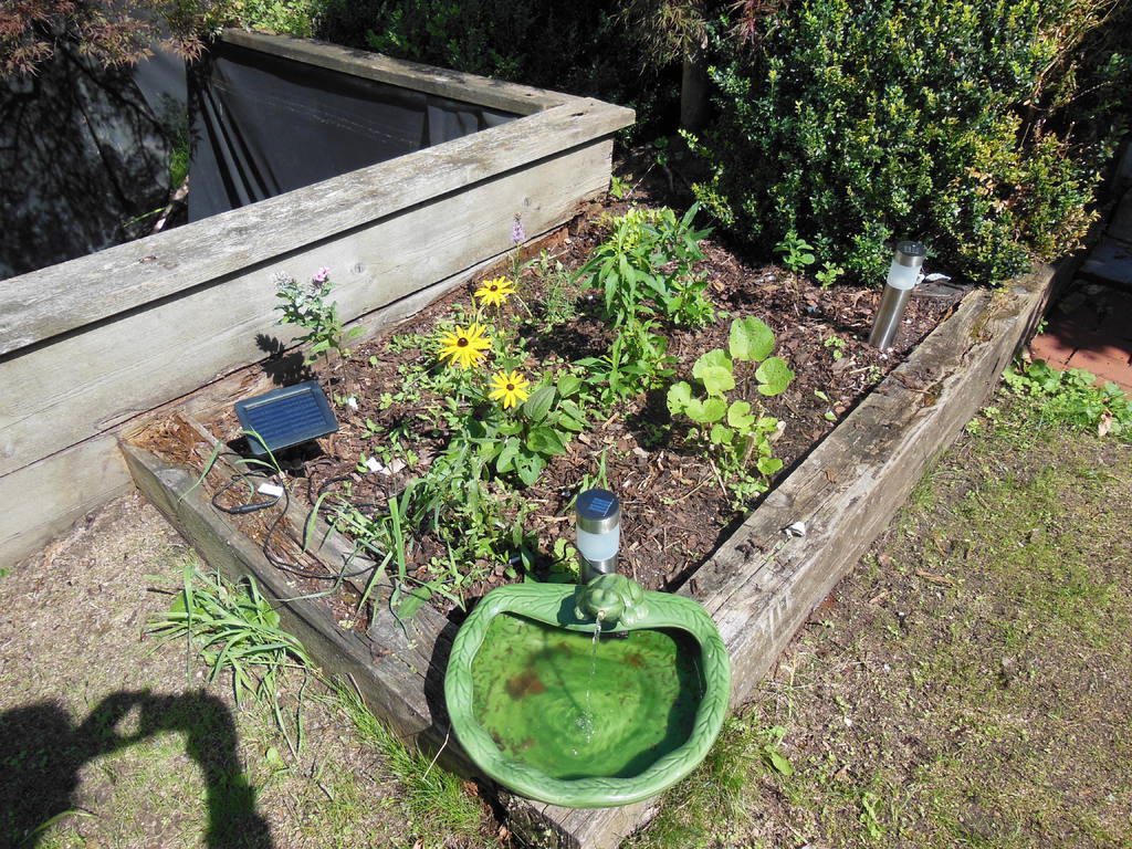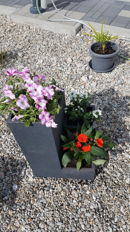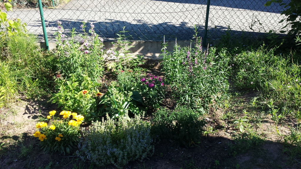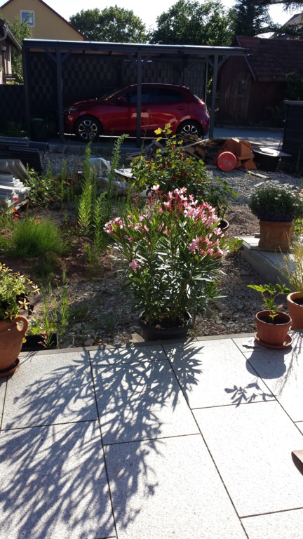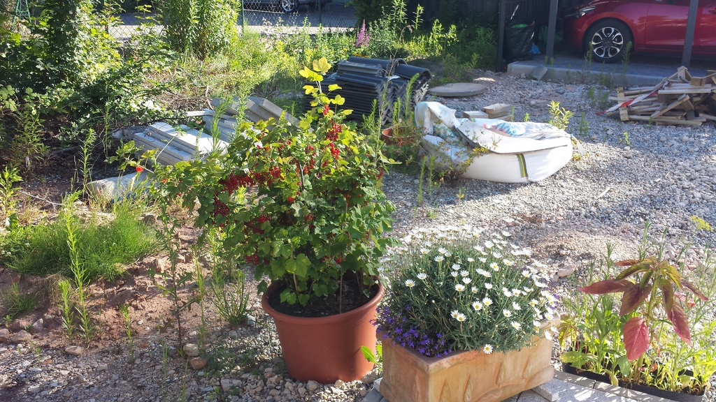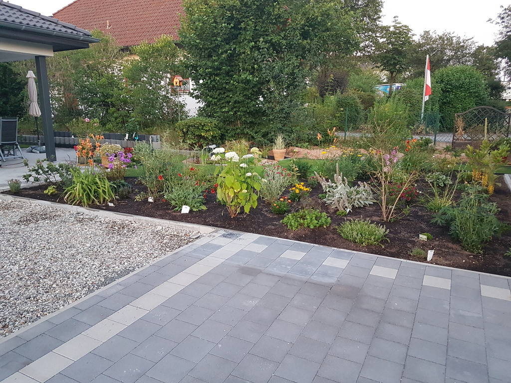 Das erste Blumenbeet ist fertig - Schmetterlinge und Bienen werden sich freuen (vorher / nachher).